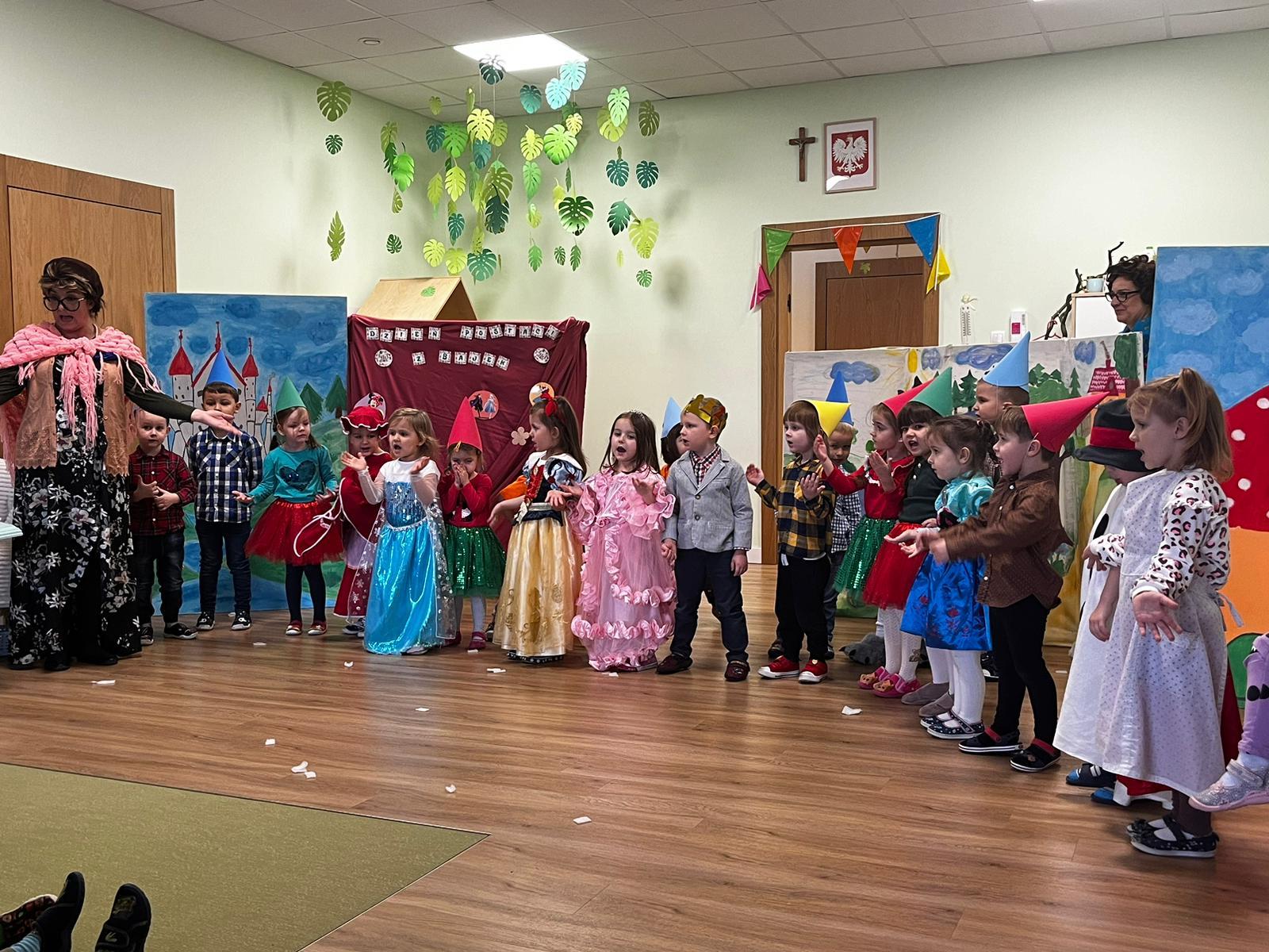 Dzień Postaci z Bajek obchodziliśmy 6 listopada. Z tej okazji dzieci z grupy Tygryski zaprezentowały krótką inscenizację, w której wystąpiły piękne postaci z różnych bajek i baśni. Publiczność z łatwością odgadywała zagadki czytane przez babcię. Zadanie przedszkolaków było napisanie bajek wraz z wychowawcami. Po występie Tygrysków zostały one odczytane przez bajkowe postaci. Inscenizacja zakończyła się wspólnym tańcem wszystkich bajkowych postaci.