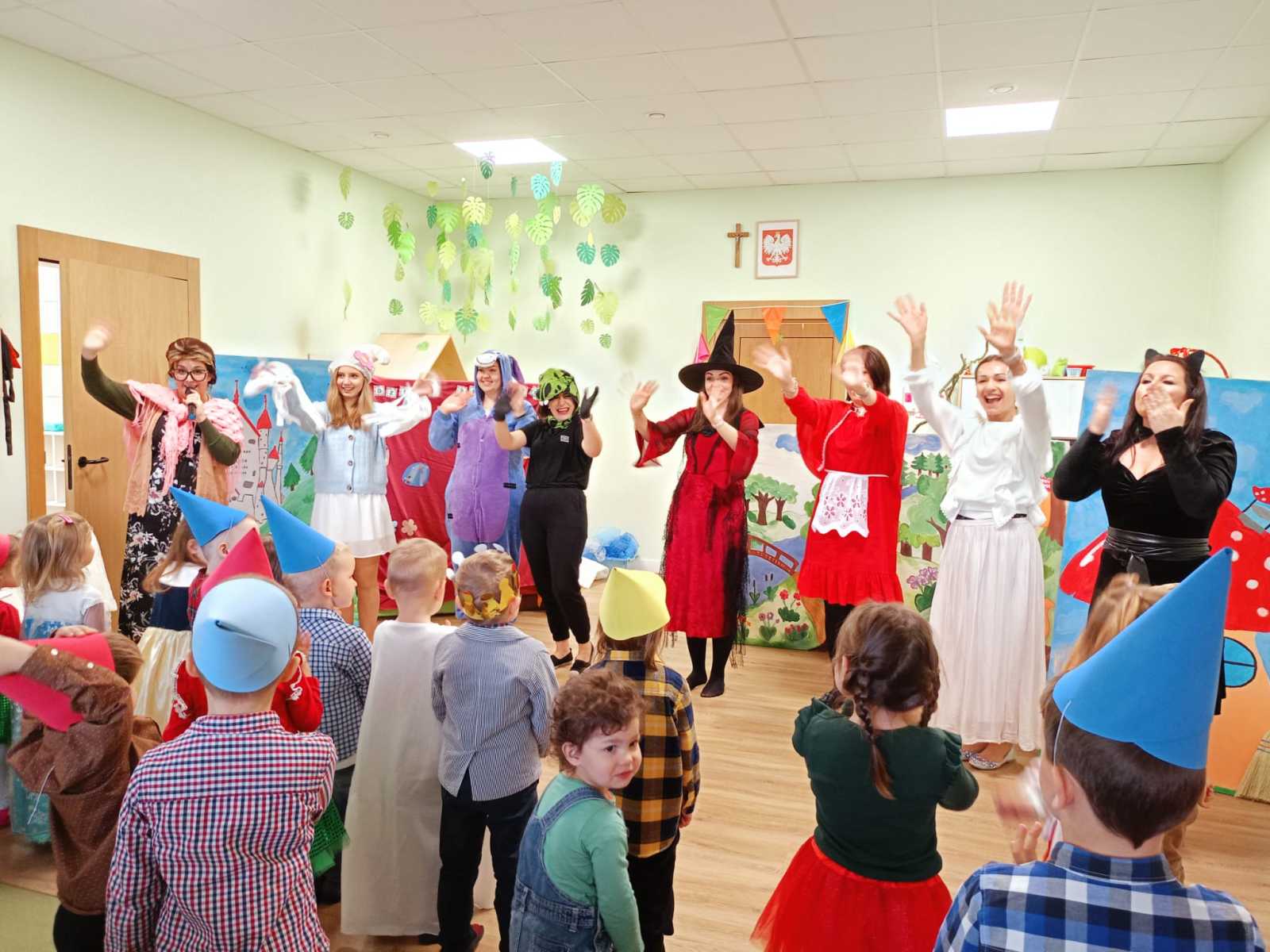 Dzień Postaci z Bajek obchodziliśmy 6 listopada. Z tej okazji dzieci z grupy Tygryski zaprezentowały krótką inscenizację, w której wystąpiły piękne postaci z różnych bajek i baśni. Publiczność z łatwością odgadywała zagadki czytane przez babcię. Zadanie przedszkolaków było napisanie bajek wraz z wychowawcami. Po występie Tygrysków zostały one odczytane przez bajkowe postaci. Inscenizacja zakończyła się wspólnym tańcem wszystkich bajkowych postaci.