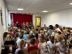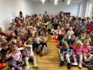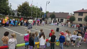 19 września 2024 r. odbyło się wielkie przedszkolne święto – Dzień Przedszkolaka. W tym dniu wszystkie dzieci z Przedszkola Publicznego ,,Plastuś” w Rychwale wybrały się wraz z Panią Dyrektor Magdaleną Pająk i wychowawcami na przemarsz w kierunku miejskiego rynku. Mieszkańcy Rychwała podziwiali kolorowy korowód dzieci. Każdy przedszkolak trzymał w ręku balonik lub barwną chustę na znak radosnego święta. Przy gmachu Urzędu Gminy i Miasta na najmłodszych czekał Pan Burmistrz Stefan Dziamara oraz Pani Wiceburmistrz Ewa Jędrzejczak. Do świętowania dołączyły również dzieci z zaprzyjaźnionego przedszkola w Siąszycach. Rozpoczęło się radosne świętowanie Dnia Przedszkolaka ! Przyszedł czas na zabawy ruchowe z muzyką, wspólne tańce i pląsy na świeżym powietrzu. Wszyscy bawili się świetnie. Uczestnicy zabawy w komplecie udali się do budynku przedszkola, a tam pan Burmistrz przeczytał dla dzieci bajkę pod tytułem ,,Staś Pętelka. Najlepszy przyjaciel”. Tym samym otworzyliśmy w nowym roku szkolnym 2024/2025 akcję pod nazwą ,,Cała Polska czyta dzieciom”. Dzieci ze skupieniem wysłuchały opowiadania o przygodach bohatera. Pan Burmistrz złożył dzieciom życzenia i poczęstował wszystkich pysznymi cukierkami. Dzieci wręczyły gościom laurki. To był dzień pełen integracji, wrażeń i dziecięcej radości ! Bardzo dziękujemy Panu Burmistrzowi Stefanowi Dziamarze, Pani Wiceburmistrz Ewie Jędrzejczak za cudownie spędzony czas.