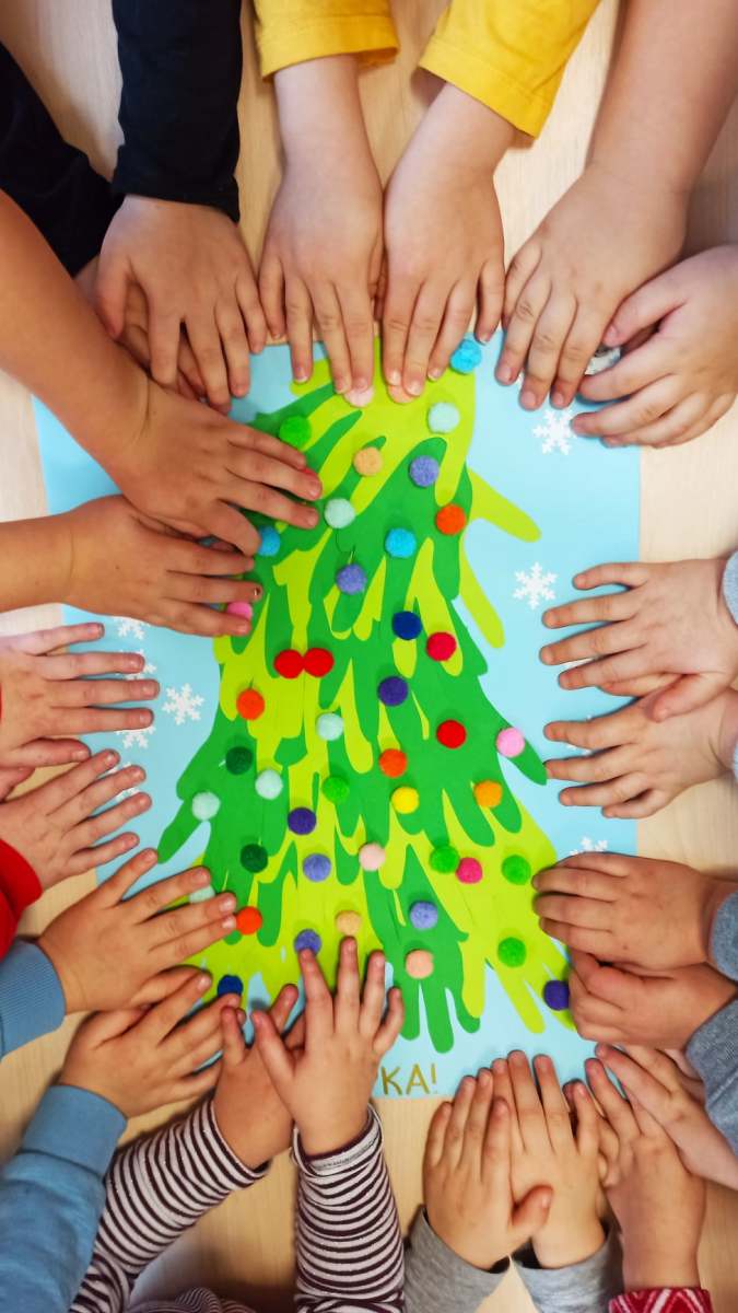 Każda grupa włożyła ogrom swojego serduszka w wykonanie upominków lub kartek świątecznych dla naszych kolegów. Tygryski wykonały stroik świąteczny dla Lenki. Został on przekazany na licytację, z której dochód został przeznaczony na rehabilitację naszej koleżanki. Kartka zaś powstała z małych rączek przedszkolaków.