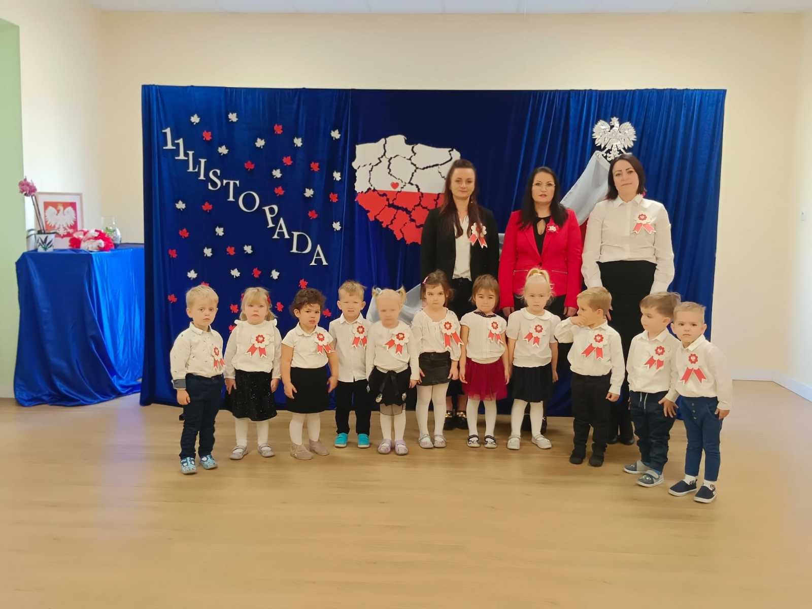 W tym roku włączyliśmy się w szóstą Akcję MEiN. W piątek 10 listopada o symbolicznej godzinie 11:11 wraz z Panem Stefanem Dziamara – Burmistrzem Rychwała oraz Panią Dyrektor Magdaleną Pająk zaśpiewaliśmy „Mazurka Dąbrowskiego”. W ten sposób włączyliśmy się w obchody Narodowego Święta Niepodległości. Każda grupa wyraziła również radosny patriotyzm recytując wiersze i wykonując utwory z okazji Święta Niepodległości.