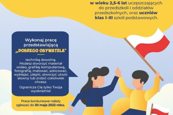 Serdecznie zapraszamy do wzięcia udziału w Ogólnopolskim Konkursie “Dobry obywatel” Zadaniem Uczestnika Konkursu jest wykonanie Pracy Konkursowej przedstawiającej „Dobrego obywatela” – techniką dowolną, przez którą rozumie się w szczególności formę: a) stworzoną z wykorzystaniem narzędzi technologicznych – stworzenie materiału wideo, grafikę komputerową, fotografię; b) artystyczną (plastyczną) – malowanie, szkicowanie, wyklejanie, wydzieranie itp.; c) literacką – stworzenie utworu słownego; d) inną forma artystyczna. Powodzenia! Zgody_dla_rodziców_opiekunów Regulamin formularz zgody
