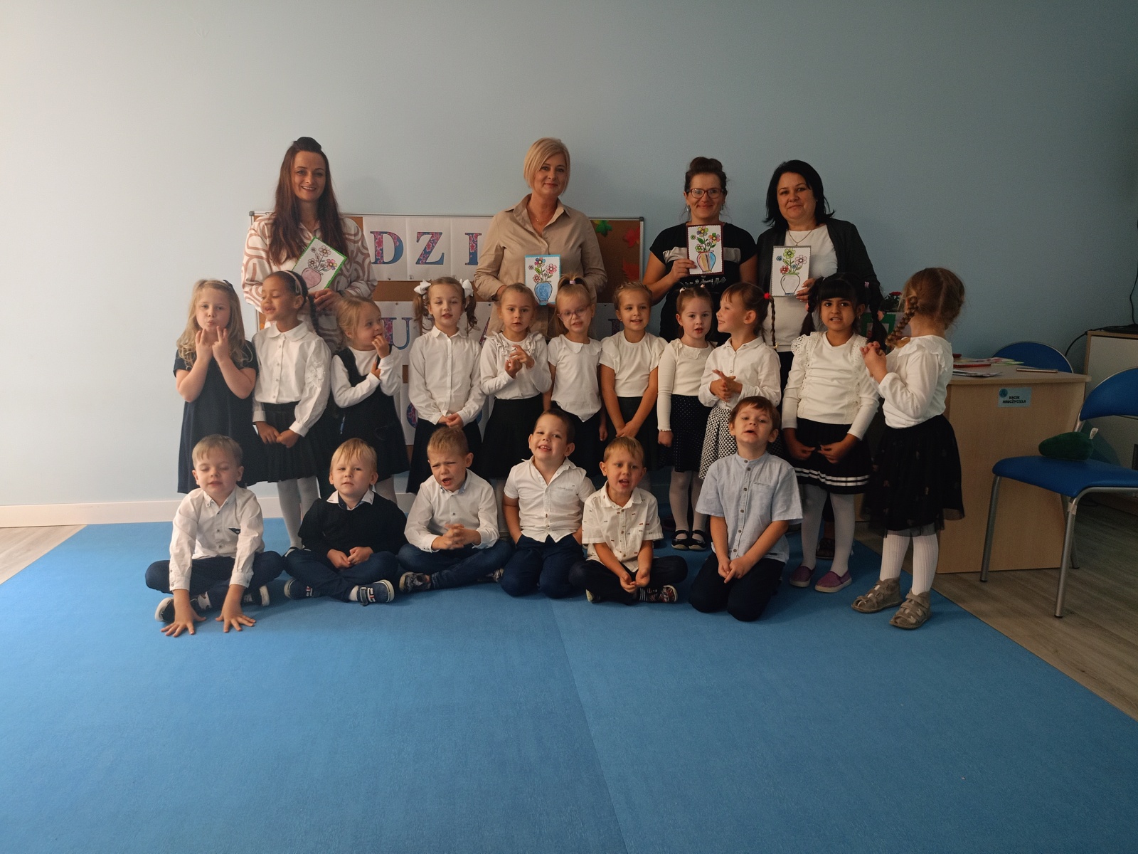 Jesień to piękna pora roku, o czym doskonale wiedzą dzieci z gr. Delfinki. Przedszkolaki z radością chodziły na spacery i zbierały dary jesieni, które później wykorzystywaliśmy do naszych prac plastycznych, a także do ścieżki sensorycznej. W tym miesiącu obchodziliśmy Dzień Edukacji Narodowej i z tej okazji starszaki przygotowały niespodziankę dla wszystkich pracowników przedszkola. Piosenka połączona z tańcem i własnoręcznie robione laurki, wywołały uśmiech na twarzach wszystkich oglądających. W październiku świętowaliśmy również „Dzień Kundelka”, oraz „Dzień Dyni”. Dzieci zamieniając się w kucharzy, przygotowały ciasto dyniowe. W tym dniu nie zabrakło również konkurencji sportowych, które uczyły dzieci zdrowej rywalizacji.