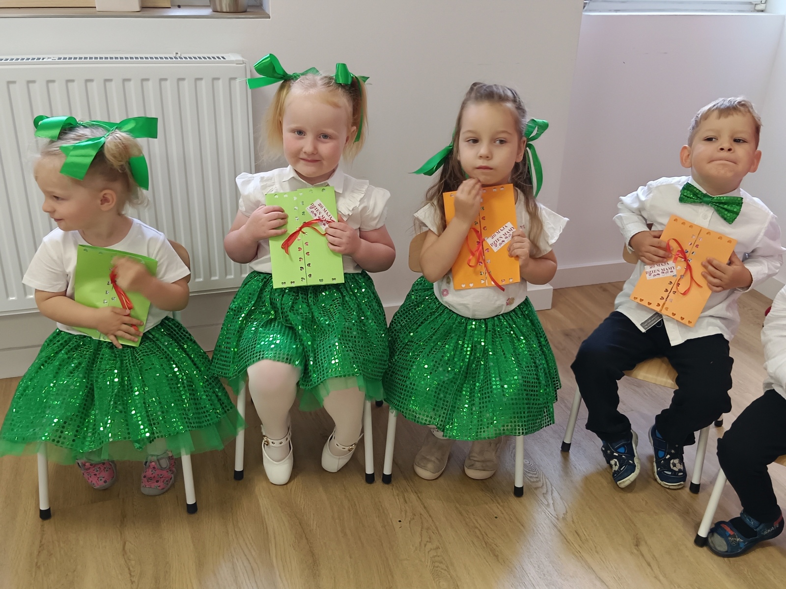 W maju, z okazji Święta Konstytucji 3 Maja przedszkolaki ubrane w barwy narodowe, zaprezentowały piosenkę pt. ,,Kocham Polskę”. 4 maja obchodziliśmy Dzień Strażaka. Gościliśmy w przedszkolu strażaków z Ochotniczej Straży Pożarnej w Rychwale. Druhowie opowiedzieli dzieciom o swojej pracy, pokazali sprzęt strażacki, który zabierają na akcje oraz przypomnieli o bezpieczeństwie przeciwpożarowym. Każde dziecko miało okazję wejść do wozu strażackiego oraz polać wodę ze strażackiego węża. W tym dniu wielokrotnie wybrzmiały słowa: ,,Ja też zostanę strażakiem !”. Z okazji święta Bibliotek i Bibliotekarzy Liski wybrały się do Miejsko-Gminnej Biblioteki Publicznej w Rychwale. Dzieci zwiedziły gmach biblioteki, wysłuchały baśni czytanej przez Panią Elżbietę Zarembę - Dyrektora biblioteki. W czytelni dzieci wykonały pracę plastyczną- zakładki do książki. Na koniec spotkania wszystkie przedszkolaki otrzymały od pani dyrektor karty biblioteczne. Za każdą wypożyczoną z rodzicem książkę, dzieci otrzymają naklejkę na kartę. Na koniec miesiąca Liski zaśpiewały piosenkę dla swoich ukochanych mam i tatusiów, z okazji najpiękniejszego święta – Dnia Mamy.