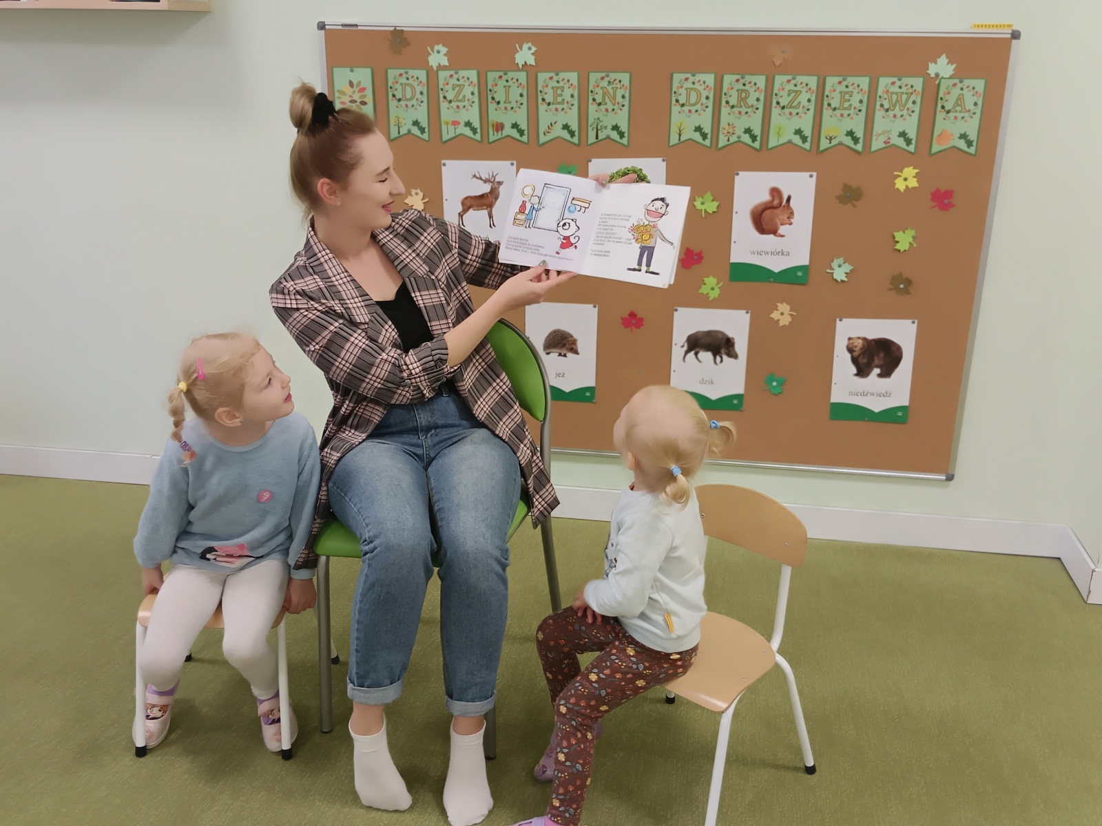 Dzieci z grupy Liski lubią słuchać baśni. Czytanie dzieciom rozbudza ciekawość świata. To wspaniała inwestycja w przyszłość naszych dzieci, dlatego bardzo cieszymy się, że rodzice przedszkolaków przyjmują zaproszenia do przedszkola, by czytać dzieciom. W październiku odwiedziły nas aż trzy mamy ! Pani Martyna Kędzierska- mama Łucji, pani Martyna Singh – mama Jasminy oraz pani Ewelina Walczak – mama Mai. Rodzice, prócz krzewienia wśród najmłodszych literatury, przygotowali ciekawe zajęcia. Dzieci malowały na mleku, dekorowały figurki gipsowych zwierzątek. W październiku obchodziliśmy także Dzień Zwierząt. Przypomnieliśmy sobie jakie są obowiązki właścicieli pupili oraz jak należycie dbać o czworonogi. Natomiast w Dzień Edukacji Narodowej przedszkolaki złożyły wszystkim pracownikom przedszkola życzenia. Ponadto, w Dzień Drzewa, posadziliśmy drzewko w ogrodzie przedszkolnym. Drzewko pozyskaliśmy dzięki współpracy z Nadleśnictwem Grodziec. W ten oto sposób wzięliśmy udział w wyzwaniu ,,Dzień Drzewa”. Na koniec miesiąca uczciliśmy Dzień Dyni ! To była wspaniała okazja, żeby maluszki zamieniły się w prawdziwych kucharzy. W kucharskich białych czapkach piekliśmy babeczki dyniowe. Oczekując na smakołyki, zajmowaliśmy się zabawami z prawdziwymi, kolorowymi i o różnych kształtach dyniami.