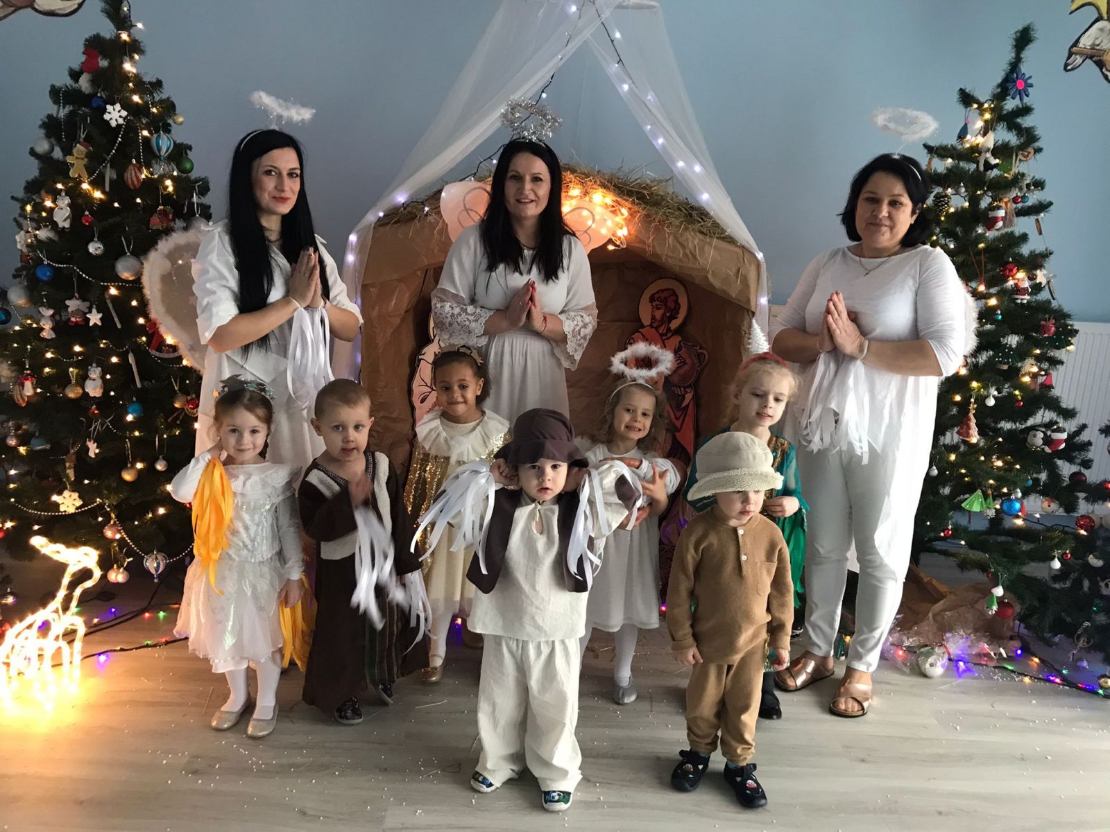 Mikołajki jak z bajki Tego dnia przy pięknych kolędach grupa Pszczółki ubrała wspólnie choinkę i wtedy…. nadszedł ON. Idzie, idzie Święty z nieba. Oto jest wśród Nas. Witaj Święty Mikołaju. Witaj, witaj Nam. Mikołaj w towarzystwie swoich Pomocników przybył z daleka, aby wręczyć Pszczółeczkom prezenty. Powitaliśmy wszystkich bardzo serdecznie piosenką „A Mikołaj pędzie a Mikołaj gna”. Serduszko Maluszków skradł Renifer , który był przesłodki - widać ,że Dzieci kochają zwierzątka. Spotkanie mikołajkowe zakończyło się wspólnym zdjęciem z gośćmi : Św. Mikołajem, Elfem, Reniferem oraz największym Pomocnikiem Mikołaja – Panią Dyrektor. Dziękujemy z całego serduszka za moc atrakcji w Mikołajki. Powitanie zimy "Przyszła zima biała Śniegiem posypała Zamroziła wodę Staw przykryła lodem Tupu tup po śniegu Dzyń dzyń na sankach Skrzypu skrzyp na mrozie Lepimy bałwanka..." Do Przedszkola zawitała Pani Zima wraz z bałwankiem Olafem. Przedszkolaki były bardzo szczęśliwe, że mogły poznać tak sympatyczne postaci. Od tego dnia zrobiło się na dworze biało i magicznie, a to wszystko zasługa naszych gości. Przedstawienie bożonarodzeniowe W tym miesiącu Pszczółki zaprezentowały przedstawienie bożonarodzeniowe pt. „Magiczny dzień”. Tego dnia Przedszkolaki zamieniły się w pięknych aktorów, byli: Aniołkami , Gwiazdeczkami, Choineczką oraz Pasterzami. Przedstawienie rozpoczęło się piosenką „ Zima, zima za oknami” i wtedy przyszła Pani Dyrektor i nasypała „śniegu”. Dzieci pięknie recytowały wiersze, pokazywały śpiewane piosenki i kolędy, m.in. : „Choineczki”; „Przybieżeli do Betlejem”. Wykonały również wzruszający taniec do kolędy „ Mario, czy Ty wiesz?”. Na koniec wszystkie Dzieci zabrały do domu bombeczkę ze swoim zdjęciem, którą ozdabiały oraz troszkę sianka, aby poczuć więź między przedszkolem a domem.