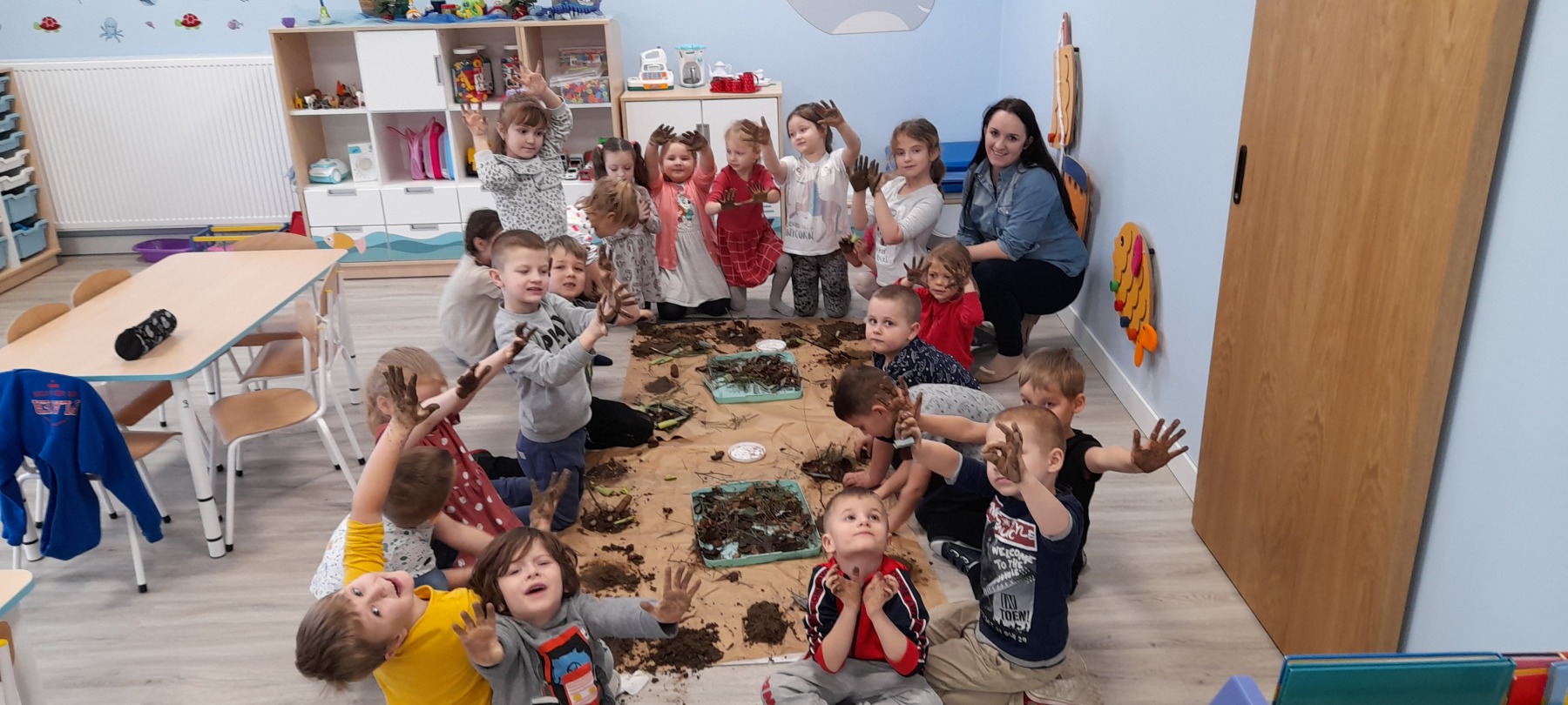 Luty była dla nas bardzo aktywnym miesiącem. Rozpoczęliśmy go od tematyki związanej z dokarmianiem ptaków. Wykonaliśmy własny karmnik oraz kule tłuszczowe z ziarna i smalcu. Z wielkim zaciekawieniem i radością obserwowaliśmy jak każdego dnia pojawia się coraz to więcej ptaków w przygotowanej przez nas ptasiej stołówce. Ponieważ bardzo lubimy ćwiczenia sensoryczne stworzyliśmy prawdziwe dzieła z błota oraz folii bąbelkowej realizując dwa zadania z projektu edukacyjnego „Z darami natury świat nie jest ponury”. Sensorycznymi doznaniami smakowymi i zapachowymi mogliśmy cieszyć się również podczas Dnia Pizzy, podczas którego utrwalaliśmy składniki na zajęciach z języka angielskiego oraz wykonaliśmy przepyszną pizzę. W lutym swoje święto obchodzą zakochani. Jednakże my postanowiliśmy spędzić je nieco inaczej, przypominając sobie zasady bezpieczeństwa i higieny oraz istotnych zasad ważnych dla naszego zdrowia. Wspólnie wykonaliśmy plakat pod hasłem „Bezpieczne Walentynki 2022” wykonując zadania PSSE w Koninie. Swoje święto obchodzą również radiowcy, dlatego postanowiliśmy wysłać kartkę do zaprzyjaźnionego radiowca z Melo Radia w Koninie. Doskonale bawiliśmy się także wcielając się w jego rolę poprzez przeprowadzanie wywiadów z koleżankami i kolegami. Podstawową potrzebą przedszkolaków jest zabawa, dlatego Dzień Dinozaura i Bal Karnawałowy od samego początku do końca dnia wypełnione byli fantazyjnymi zabawami w gronie przedszkolnych przyjaciół.