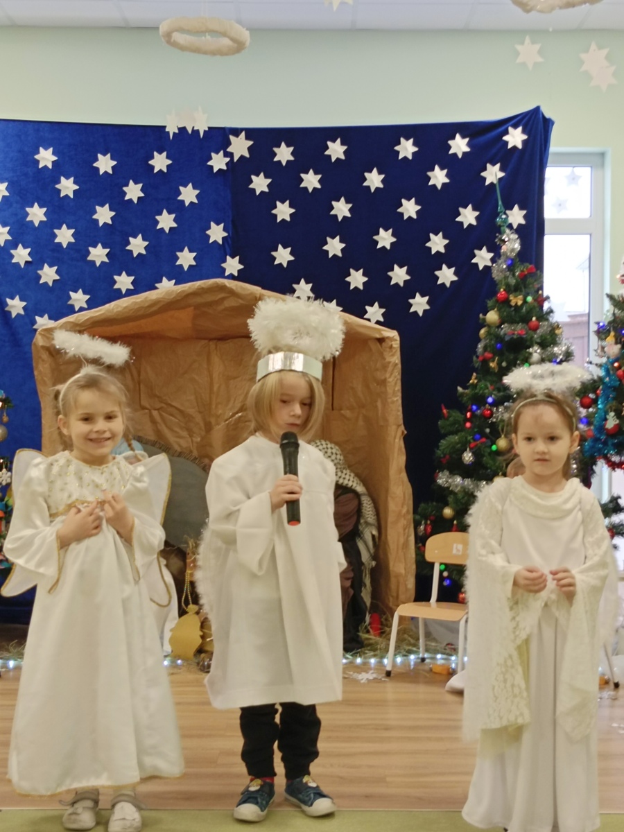 Grudzień to miesiąc magiczny. Do przedszkola zawitał przemiły gość, długo wyczekiwany przez wszystkie dzieci – Święty Mikołaj ! Przedszkolaki przygotowały się na to spotkanie, powitały Mikołaja piękna piosenką. Święty Mikołaj pamiętał o wszystkich dzieciach i obdarował każdego prezentami. 16 grudnia Rybki wystawiły jasełka w naszym przedszkolu. Było wyjątkowo. Towarzyszyli nam cudowni goście – Kierownik Referatu Oświaty, Promocji, Kultury i Sportu Pani Marzena Grubska, ks. Kanonik Marek Molewski oraz Rodzice. Był to dzień pełen radości i wzruszeń. Dziękujemy serdecznie gościom za obecność i życzenia! Kolejnym niesamowitym wydarzeniem były zajęcia otwarte z rodzicami oraz powitanie pani Zimy.
