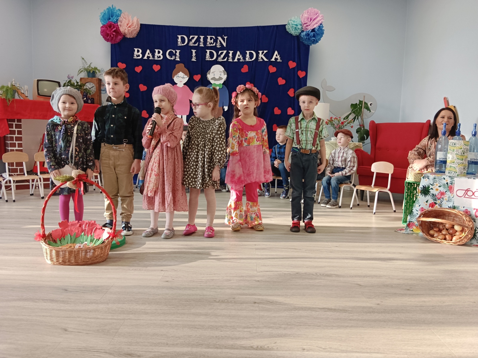 Z okazji Dnia Babci i Dziadka w styczniu gościliśmy w przedszkolu ukochanych dziadków. Dzieci przedstawiły część artystyczną pt. ,,Historia babci i dziadka”. Przedszkolakom udało się przenieść gości w czasy ich młodości, kiedy to ,,w kolejkach do sklepu poznali się babcia i dziadek”. Podróż do lat osiemdziesiątych wywołała radość na twarzach naszych ukochanych gości. Przedszkolaki wręczyły ukochanym dziadkom upominki, po czym celebrowaliśmy wspólnie ich święto przy stole. Było to bardzo radosne i wzruszające spotkanie zarówno dla gości jak i ich wnuków.