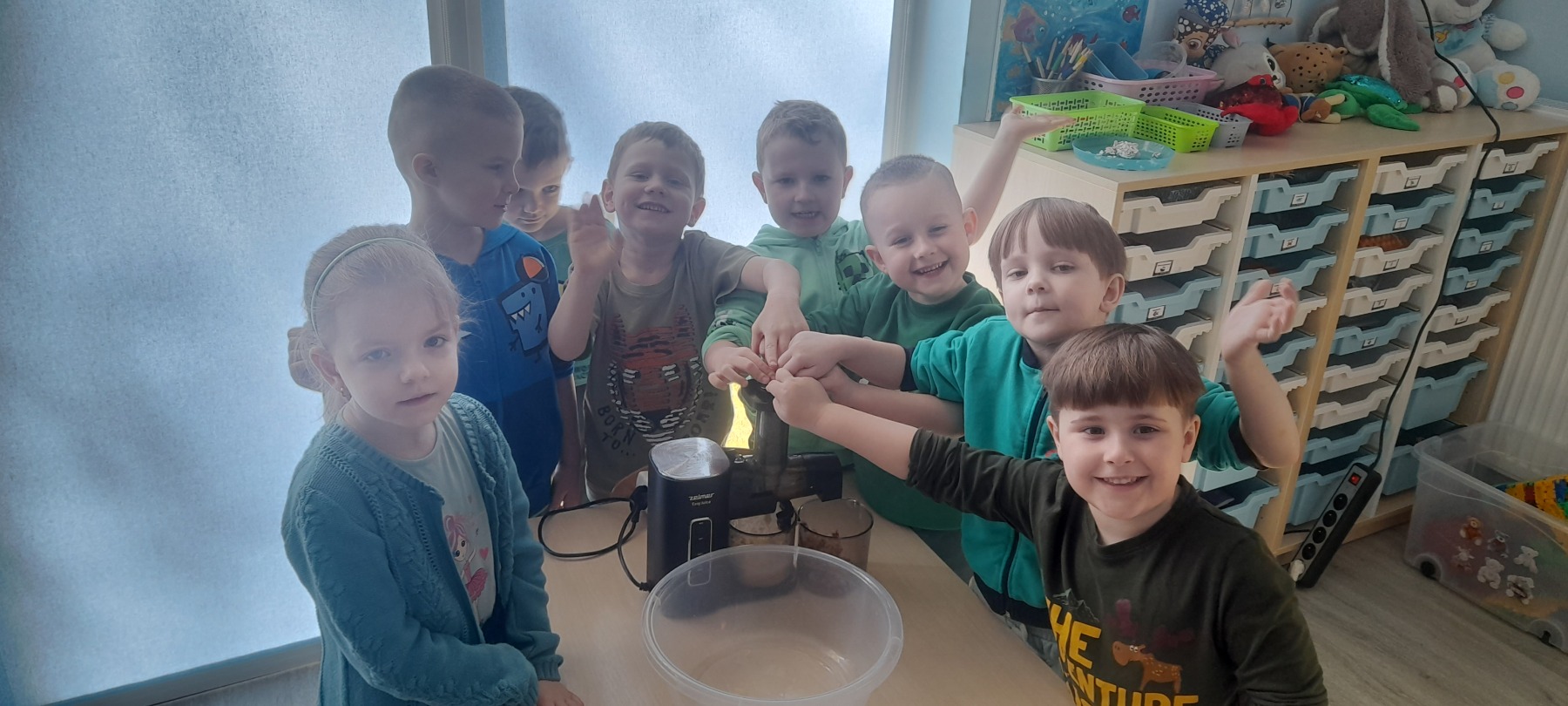 Do grupy „Rybki” uczęszcza 22 dzieci pięcioletnich, wśród których jest 11 dziewczynek i 11 chłopców.