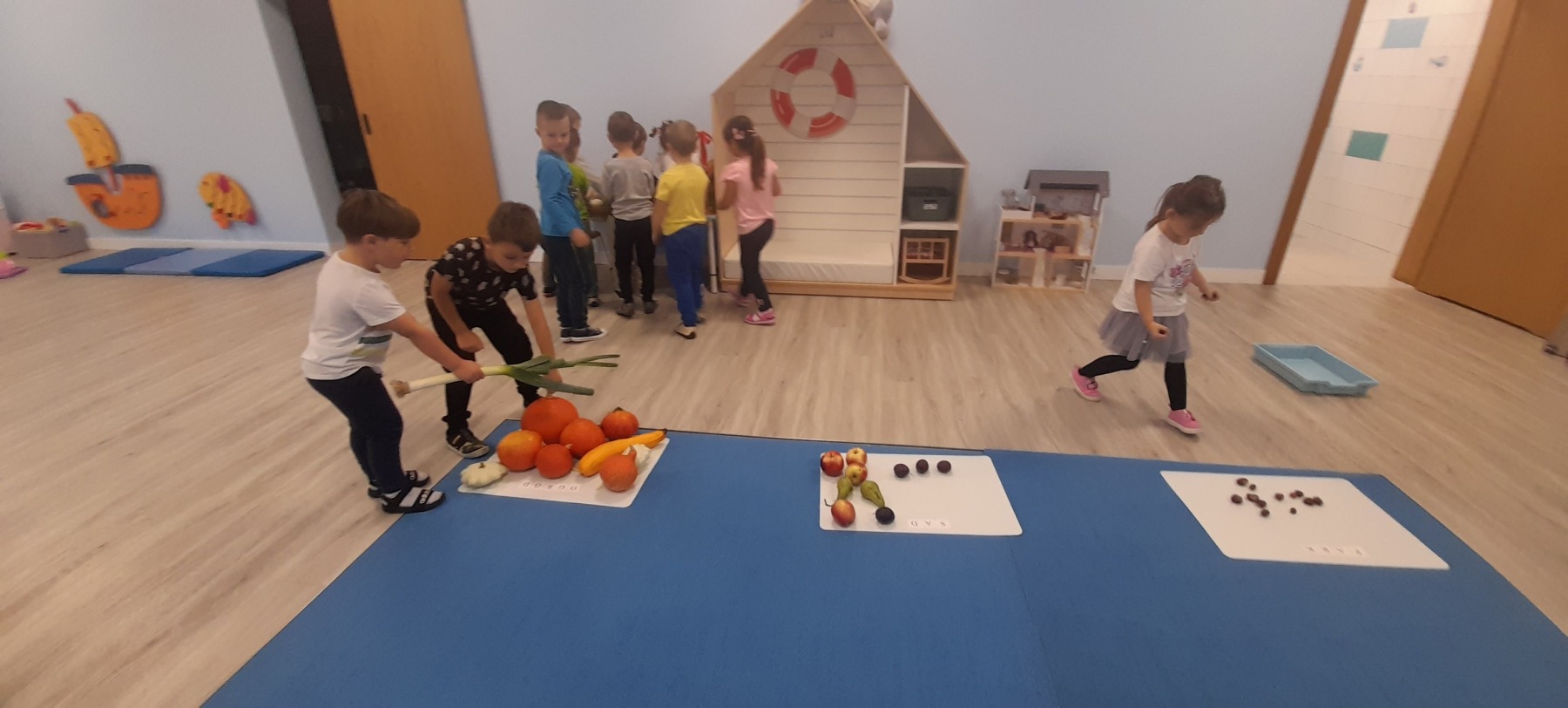 Do grupy „Rybki” uczęszcza 22 dzieci pięcioletnich, wśród których jest 11 dziewczynek i 11 chłopców.