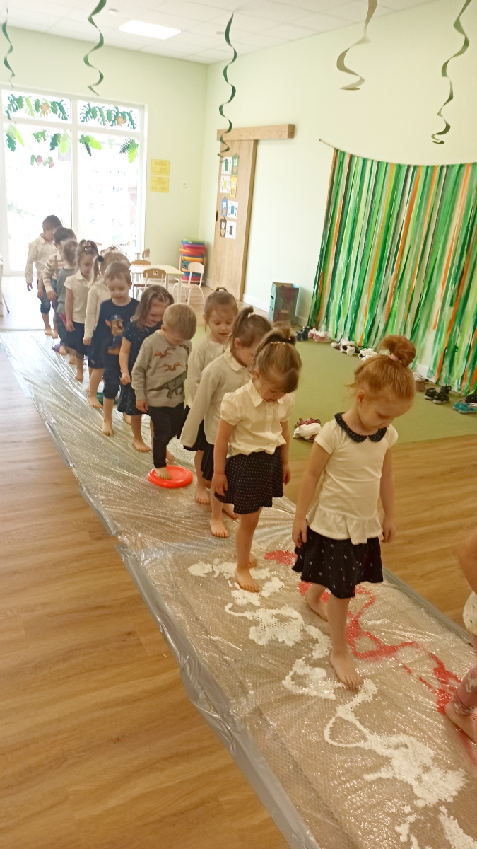 Dzieci uczą się zasad współżycia w grupie, doskonalenia samodzielności oraz kształtowania codziennych nawyków higienicznych. Każdy dzień to dla maluchów nowe wyzwania i doświadczenia. Tygryski bardzo chętnie wykonują prace plastyczne z zestawieniem różnych technik. Ogrom radości sprawiają im zabawy ruchowe w sali jak i w przedszkolnym ogrodzie. Dzieci uczestniczą w zajęciach z języka angielskiego, logopedii, religii, rytmiki oraz tańca. Te małe dzieci są bardzo ciekawe otaczającej nas rzeczywistości, chłoną wszystko z ogromnym apetytem na więcej.