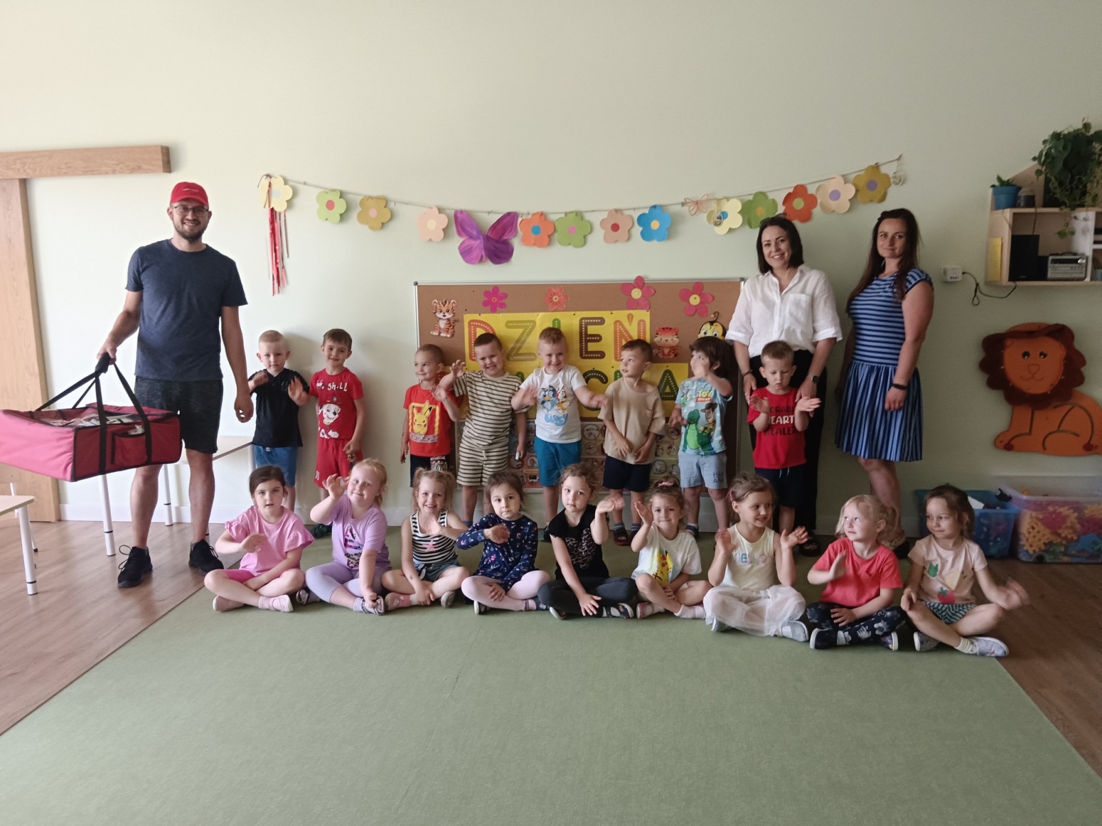 Czerwiec rozpoczęliśmy od niespodzianki, którą zafundowali Tygryskom rodzice, którzy zgłosili dzieci do zabawy z okazji Dnia Dziecka z Pizzerią ,,Ogniem i piecem” w Jaroszewicach Rychwalskich. Dzięki ich zaangażowaniu, przedszkolaki wygrały trzy ogromne pizze ! Były pyszne, a uczta ucieszyła każdego Tygryska. Wspólnie z rodzicami, 10 czerwca, wybraliśmy się na wycieczkę do ,,Żartowni” w Zbiersku. Dzieci bawiły się na świeżym powietrzu, w kuchni błotnej. W lesie malowaliśmy na kartkach najbliższych, nie farbami ! Tworzyliśmy obrazy z darów natury – kory, liści, szyszek. Niesamowita przygoda. Razem z rodzicami wyczarowaliśmy papugi. Kolorowe, z drewna, malowane, z piórami- prawdziwe arcydzieła ! A najważniejsze, że to wspólne dzieło – dziecka i mamy, taty. To był prawdziwy powrót do natury. Słowa uznania i wdzięczności za warsztaty kierujemy do pani Żanety Kaczmarek, która wprowadziła nas w ten cudowny świat. 13 czerwca gościliśmy w przedszkolu mamę Lilli. Pani Kesja Zych przeprowadziła dla dzieci warsztaty nt wykonywanego zawodu – weterynarza. Do przedszkola na zajęcia zaproszenie przyjęła również mama Patryka – pani Marlena Kornaszewska. Bardzo dziękujemy rodzicom za zaangażowanie w życie grupy. To budujące widzieć, że rodzice chętnie angażują się w pracę przedszkola, a współpraca układa się znakomicie. Dla dzieci wizyta mamy w przedszkolu to niezapomniany czas. Czerwiec to miesiąc podsumowań. Tygryski pożegnały przedszkole i wyruszyły na wyczekiwany odpoczynek wśród morskich fal, szlakami gór lub w lesie, nad jeziorem. Bezpiecznych wakacji i do zobaczenia we wrześniu !