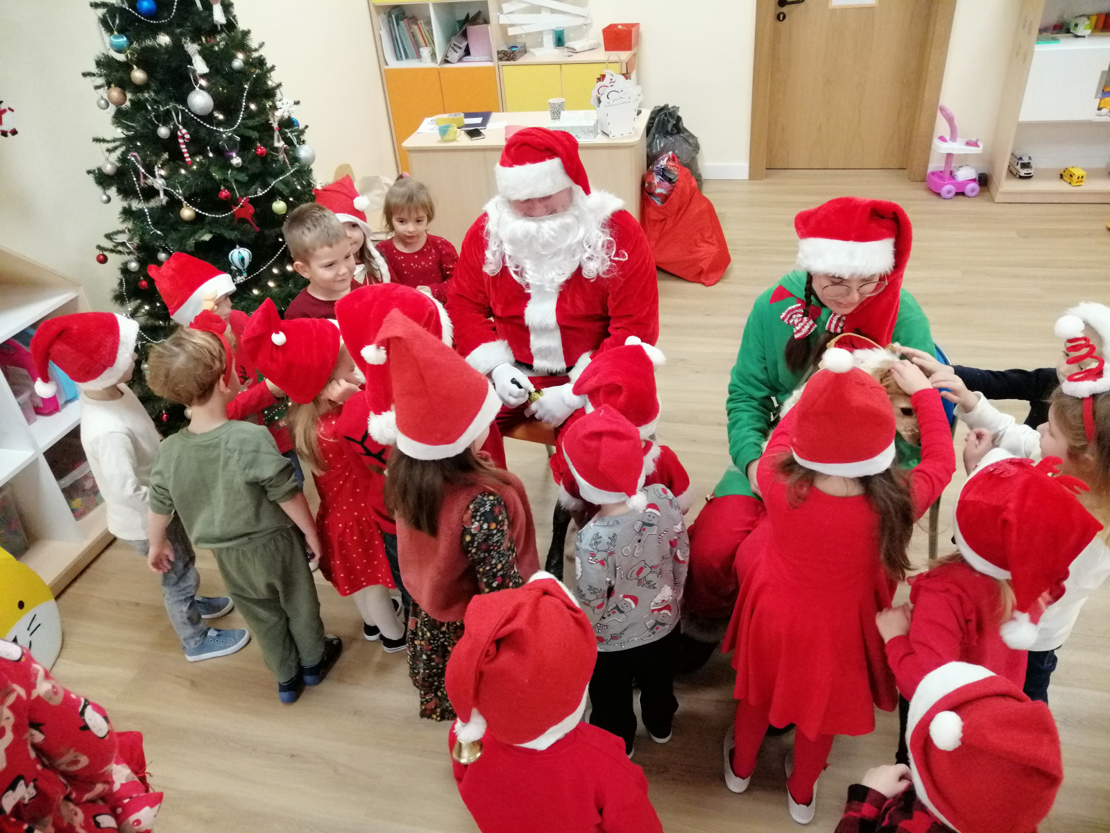 Grudzień w grupie Żyrafek -W dniu imienin Mikołaja odwiedził nas Św. Mikołaj, -Przygotowaliśmy wspólnie naszą salę do Świąt Bożego Narodzenia, - Z okazji Światowego Dnia Praw Dziecka utrwaliliśmy wiadomości, -Poznaliśmy tradycje Świąt Bożego Narodzenia, -Przygotowaliśmy nagranie świąteczne „Jasełka” z okazji Świąt Bożego Narodzenia