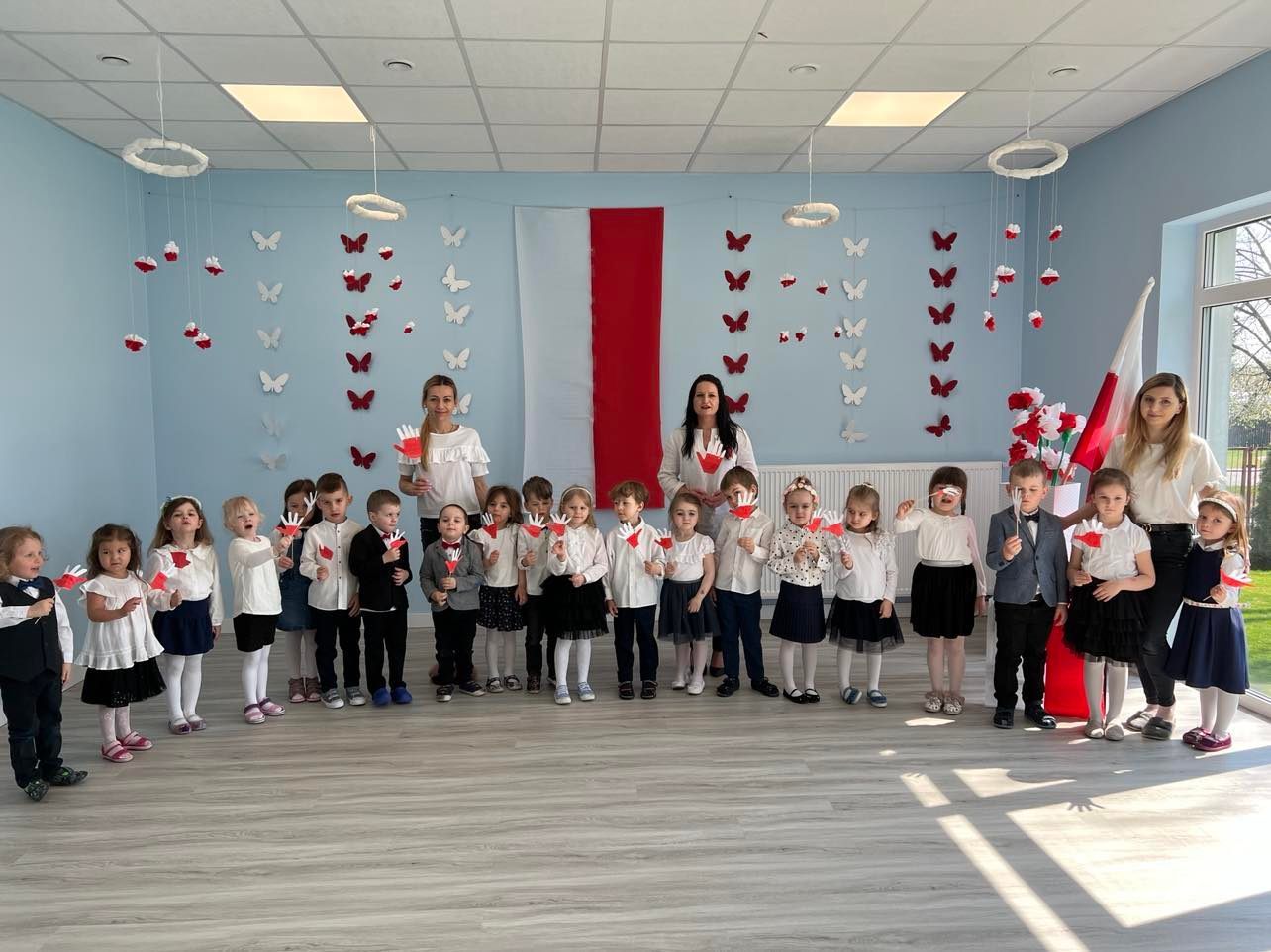To był piękny maj… Na początku miesiąca, podczas tygodniowego cyklu zajęć, podjęte były działania mające na celu uczczenie obchodzonych w maju Świąt Państwowych: 1 maja – Święto Pracy, 2 maja – Dzień Flagi Narodowej oraz 3 maja Uchwalenie Konstytucji 3 Maja. Mieliśmy przyjemność gościć w naszym przedszkolu wyjątkowych gości, którzy na co dzień biegną z pomocą wszystkim, którzy jej potrzebują. Odwiedził nas Naczelnik Ochotniczej Straży Pożarnej w Rychwale - Tomasz Grzelak oraz Naczelnik OSP Siąszyce - Marcin Matecki. Żyrafki odwiedziły Gminno-Miejską Bibliotekę Publiczną w Rychwale. Dnia 19 maja Żyrafki wzięły udział w spotkaniu z panem Andrzejem Siwińskim –pszczelarzem, który przybył w celu przeprowadzenia z dziećmi warsztatów pszczelarskich. Nie zabrakło również gimnastyki oraz wspaniałej zabawy na naszym przedszkolnym placu zabaw.