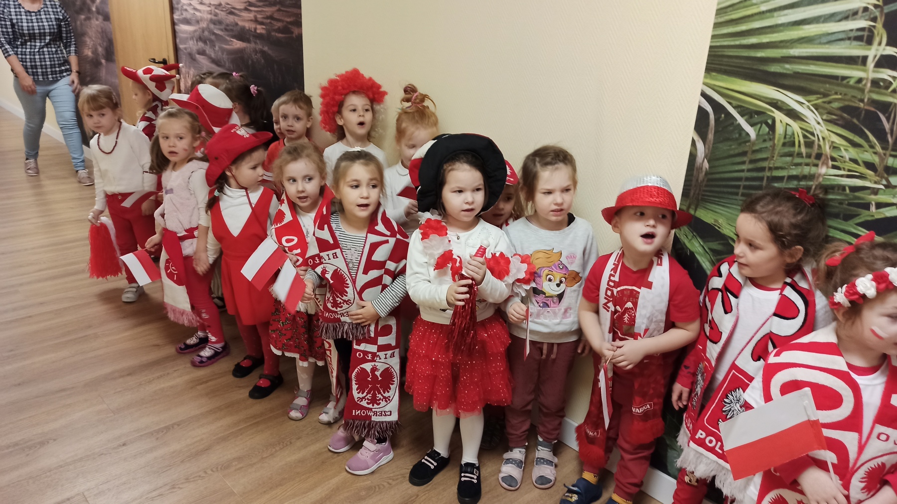 W listopadzie dzieci z grupy „Żyrafki” celebrowały Dzień Postaci z Bajek. Ciocie przygotowały dla nas niezwykłą niespodziankę w postaci biletowanego wyjścia na teatrzyk pod tytułem „Czerwony Kapturek” oraz przyjęcia, na którym świetnie bawiliśmy się w naszych pięknych strojach. W tym dniu odwiedził nas także wspaniały bajkowy gość a mianowicie Kubuś Puchatek z dzbankiem pełnym cukierków! Każdy z nas tego dnia mógł się poczuć wyjątkowo i bawić się radośnie z innymi. W tym miesiącu wzięliśmy udział w akcji MEN „Szkoła do hymnu”. Ubraliśmy się na galowo i uroczyście odśpiewaliśmy „Mazurka Dąbrowskiego”, aby upamiętnić 104. rocznicę odzyskania niepodległości przez nasz kraj. Jak na małych patriotów przystało wykonaliśmy również utwór „Polska to nasz kraj”. 17 listopada odbyła się wycieczka do teatru im. M. Bogusławskiego w Kaliszu na spektakl zatytułowany „Tadek Niejadek”. Dla wielu przedszkolaków było to pierwsze spotkanie z teatrem, które wprowadziło ich w świat scenicznej kultury. Kilka dni później tuż przed rozpoczęciem Mistrzostw Świata w Piłce Nożnej w Katarze dzieci z grupy „Żyrafki” włączyły się do akcji „Bliżejprzedszkolna strefa kibica”. Wraz z pozostałymi grupami przedszkolaków ubrały się w biało-czerwone barwy i gorąco zagrzewały naszych rodaków do świetnej gry fair play! W kolejnych tygodniach obchodziliśmy Mickey Mouse Day oraz Światowy Dzień Pluszowego Misia.