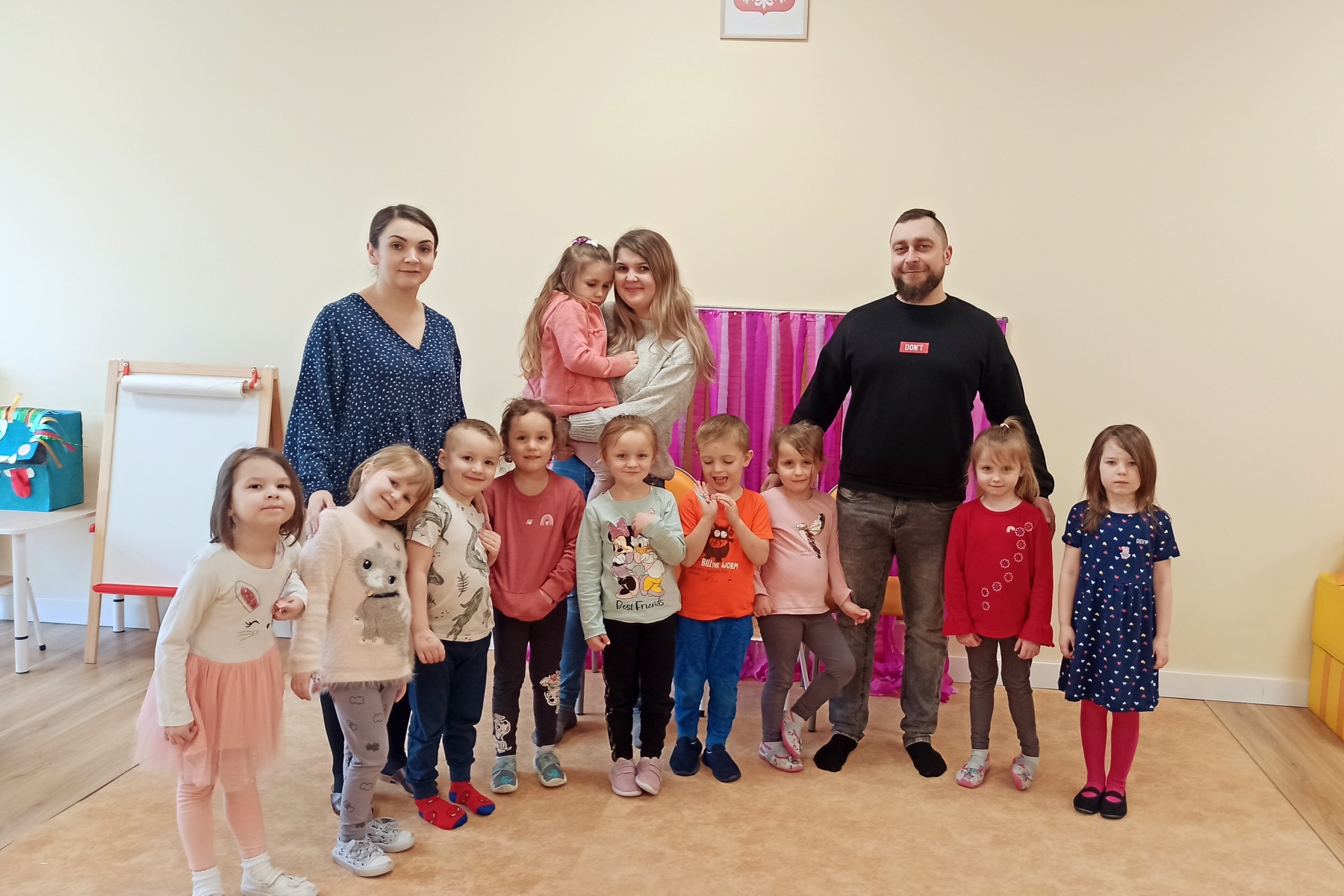 Miesiąc marzec dzieci z grupy „Żyrafki” rozpoczęły od realizacji dwóch zadań z Ogólnopolskiego Programu Krainy Edukacji „EKO KRAINA”. Pierwszym z nich była „Joga”. Żyrafki przebrały się w stroje gimnastyczne, rozłożyły maty i rozciągały się w stylu jogi przy dźwiękach relaksacyjnej muzyki. Drugim zadaniem był „Karmnik dla ptaków”. 8 marca nie tylko świętowaliśmy Dzień Kobiet ale również Dzień Dentysty. Z tej okazji zaproszenie do naszej grupy przyjęła Pani Aleksandra Drewniacka, która na co dzień pracuje jako higienistka stomatologiczna. Pani Ola poprowadziła fantastyczne zajęcia przekazując dzieciom ogrom przydatnej wiedzy dotyczącej higieny jamy ustnej. Przedszkolaki dowiedziały się między innymi na czym polega praca dentysty oraz higienistki stomatologicznej, jak wygląda gabinet dentystyczny oraz jak przebiega wizyta w takim miejscu. Żyrafki nauczyły się także co należy jeść a czego unikać aby utrzymać zdrowy uśmiech. Nasz gość poinstruował również dzieci jak prawidłowo szczotkować swoje zęby, a na zakończenie naszego spotkania podarował dzieciom naklejki i dyplomy dzielnych pacjentów. Serdecznie dziękujemy Pani Olu za to spotkanie. Zwiększyła Pani świadomość przedszkolaków na temat pracy gabinetu stomatologicznego oraz dbania o zdrowy uśmiech już od najmłodszych lat. W tym miesiącu naszych przedszkolaków chętnie odwiedzali kolejni odważni rodzice aby przenieść nas w zaczarowany świat dziecięcej literatury. Serdecznie dziękujemy Pani Justynie i Panu Łukaszowi Puchalik – rodzicom Lilki, Pani Beacie Ciszak – mamie Elizy oraz Pani Karolinie Bednarek – mamie Łucji za wspólną podróż do świata wartości i dziecięcej wyobraźni. Bardzo dziękujemy za miło spędzony czas, zaangażowanie i aktywne uczestnictwo w życiu naszej grupy. 14 marca celebrowaliśmy Dzień Matematyki. W tym dniu królowały zabawy matematyczne przy muzyce oraz aktywności ruchowe. Naszą pierwszą zabawą była gigantyczna gra planszowa z ćwiczeniami ruchowymi. Dzieci podzielone na dwie drużyny rywalizowały o zdobycie jak największej ilości klocków. Zwycięska drużyna wybrała smaczną nagrodę dla wszystkich przedszkolaków. Następnie przeszliśmy do zabaw ruchowych przy piosence "Muzyczna gimnastyka". Utwór ten zdecydowanie skradł serducha dzieci. Kolejną zabawą matematyczną był "Taniec zatrzymywaniec" z piktogramami oraz "Kolorowy kod". Na koniec utrwalaliśmy umiejętność liczenia wykorzystując w zabawie woreczki gimnastyczne oraz kolorowaliśmy łódź podwodną według kodu. 21 marca nie zapomnieliśmy o Światowym Dniu Osób z zespołem Downa ubierając kolorowe skarpetki oraz włączyliśmy się do akcji „Wyjątkowa skarpetka”. W tym dniu także powitaliśmy Panią Wiosnę oraz wzięliśmy udział w konkursie na najpiękniejszą marzannę. Na koniec marca zrobiliśmy naszym roślinką prawdziwe wiosenne spa.
