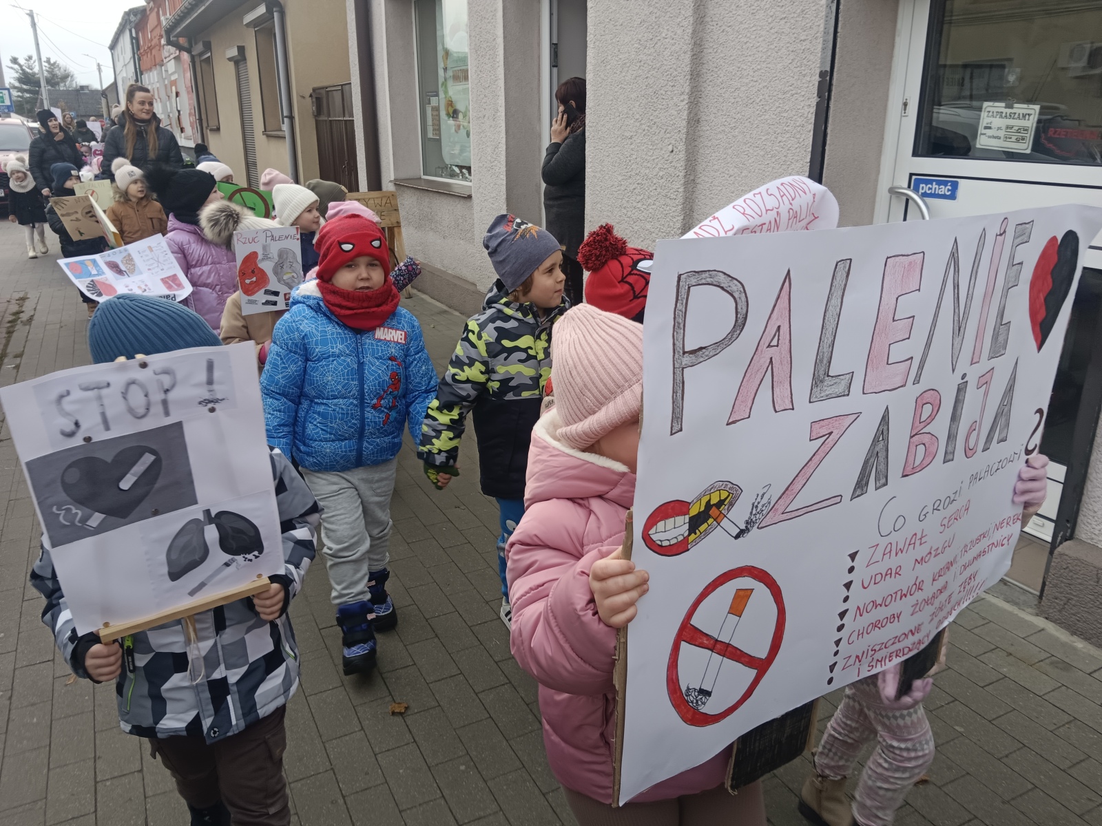 Listopad upłynął nam pod znakiem świąt narodowych. Przedszkolaki wzięły udział w akcji Ministerstwa Edukacji Narodowej ,,Szkoła do hymnu”. Zgodnie z założeniami cała społeczność przedszkolna 7 listopada 2025 r. o symbolicznej godzinie 11.11 odśpiewała hymn narodowy. Mieliśmy również zaszczyt uczestniczyć w XI Konkursie Piosenki Patriotycznej zorganizowanym przez Szkołę Podstawową im. Powstańców Styczniowych w Grochowach. Naszą placówkę reprezentowały dwie dziewczynki z naszej grupy: Julia Adamiak i Maja Walczak. Dzieci zaprezentowały utwór pt. ,,Polska to mój kraj”. Piosenkę zaśpiewały znakomicie, otrzymały gromkie brawa oraz dyplomy i upominki. W listopadzie odbył się również w naszym przedszkolu konkurs patriotyczny pn. ,,Mały patriota”. Przedszkolaki z naszej grupy licznie wzięły w nim udział. Dzielnie recytowały wiersze o ojczyźnie, wykazały się dużą odwagą, pracą oraz talentem aktorskim. ,,Rybki” postanowiły również odwiedzić seniorów zamieszkujących w Villi Parkowej w Rychwale – domu opieki dla osób starszych. Tam przedstawiły mini koncert patriotyczny z okazji Święta Niepodległości. Były to chwile wzruszeń i integracji. W listopadzie wzięliśmy udział w akcji edukacyjnej przygotowanej przez Powiatową Stację Sanitarno – Epidemiologiczną w Koninie pn. ,, Rzuć palenie razem z nami”. Zorganizowaliśmy pochód ulicami Rychwała, zachęcaliśmy do zdrowego trybu życia skandując hasło: ,,Rzuć palenie”.