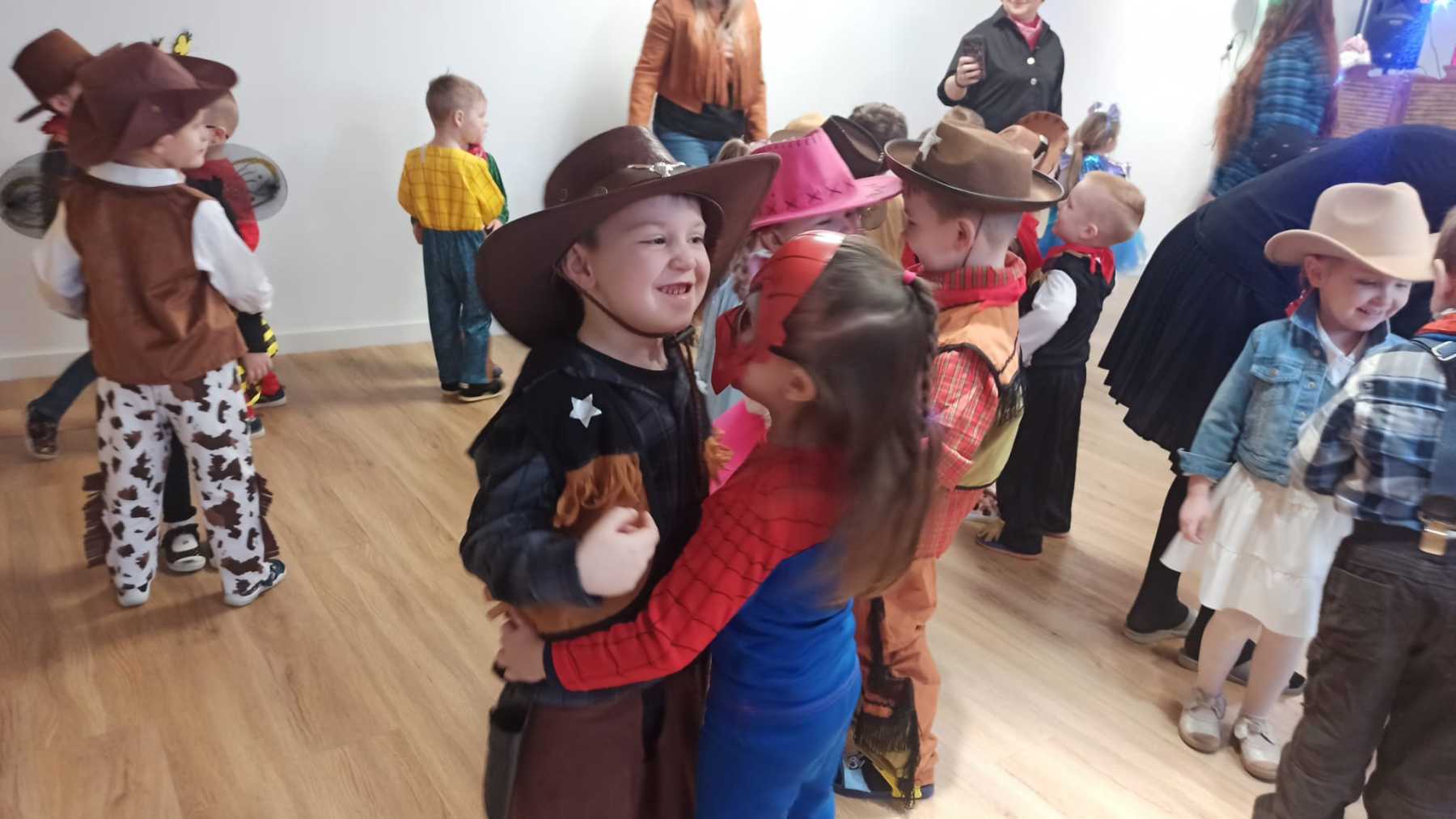 Bal karnawałowy w grupie „Żyrafki” był pełen radości i kolorów. Sala przedszkolna zamieniła się w bajkową krainę. Dzieci w fantazyjnych strojach – kowbojów, księżniczek i superbohaterów tańczyły i uczestniczyły w zabawach. Odbywały się kolorowe korowody, zabawy z balonami oraz poszukiwanie ukrytych skarbów. Wspólne tańce przy ulubionej muzyce i pamiątkowe zdjęcia sprawiły, że dzień ten pozostanie na długo w pamięci. Bal karnawałowy to czas radości i swobodnej zabawy dla „Żyrafek”.