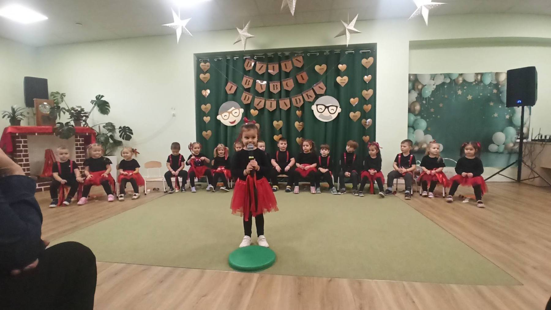 Dzień Babci i Dziadka w grupie Żyrafki 👵👴💐 To był wyjątkowy i pełen wzruszeń dzień w naszym przedszkolu. Dzieci z ogromnym zaangażowaniem zaprezentowały przygotowane występy, dziękując Babciom i Dziadkom za miłość, troskę i codzienne wsparcie. ❤️🥰 Swoją obecnością zaszczycili nas również Pani Dyrektor Magdalena Pająk, Pan Burmistrz Stefan Dziamara oraz Pan Przewodniczący Rady Miejskiej Roman Drewniacki za co serdecznie dziękujemy. 🌷 Dziękujemy wszystkim gościom za wspólnie spędzony czas i piękną, rodzinną atmosferę ❤️