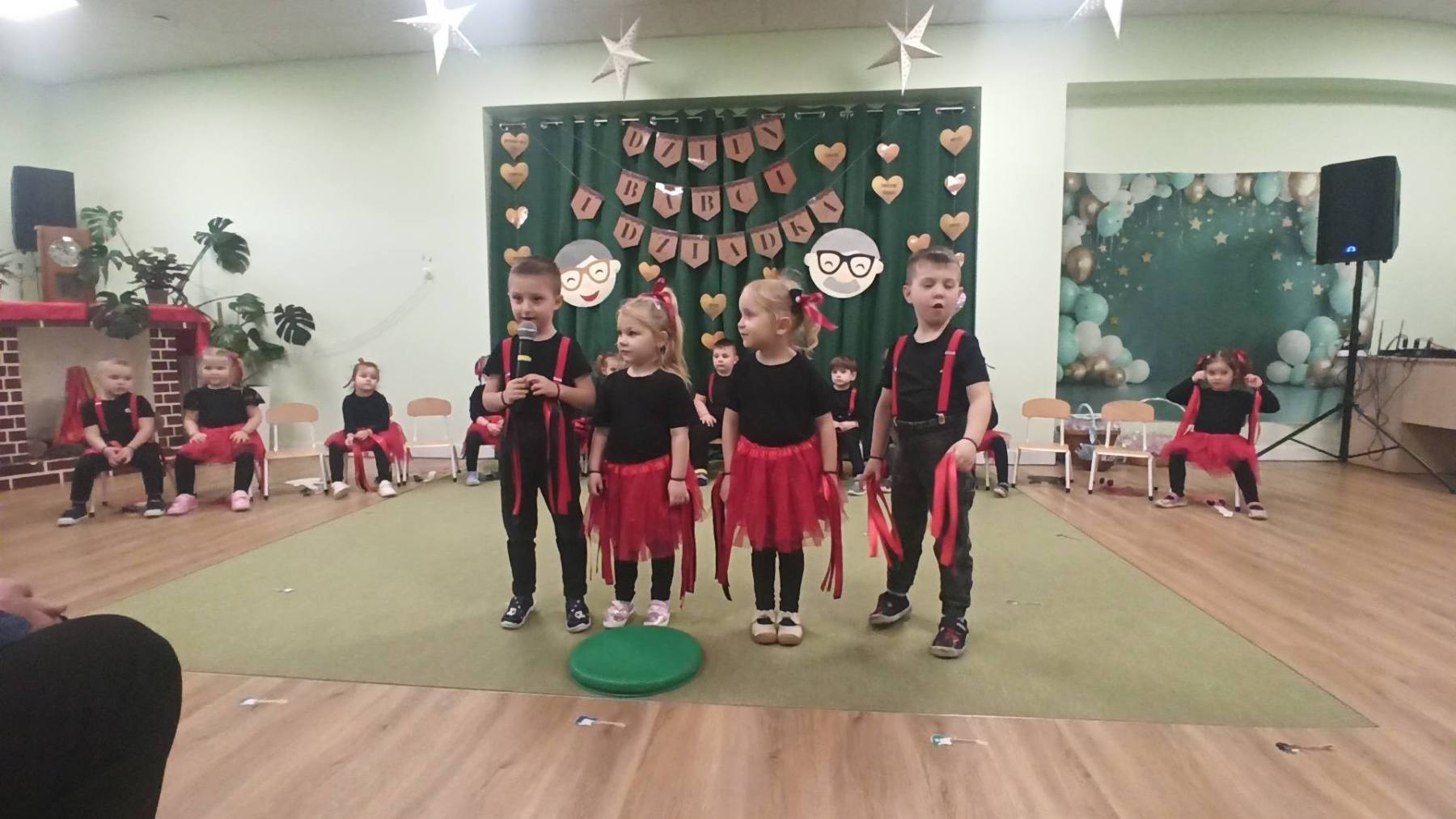 Dzień Babci i Dziadka w grupie Żyrafki 👵👴💐 To był wyjątkowy i pełen wzruszeń dzień w naszym przedszkolu. Dzieci z ogromnym zaangażowaniem zaprezentowały przygotowane występy, dziękując Babciom i Dziadkom za miłość, troskę i codzienne wsparcie. ❤️🥰 Swoją obecnością zaszczycili nas również Pani Dyrektor Magdalena Pająk, Pan Burmistrz Stefan Dziamara oraz Pan Przewodniczący Rady Miejskiej Roman Drewniacki za co serdecznie dziękujemy. 🌷 Dziękujemy wszystkim gościom za wspólnie spędzony czas i piękną, rodzinną atmosferę ❤️