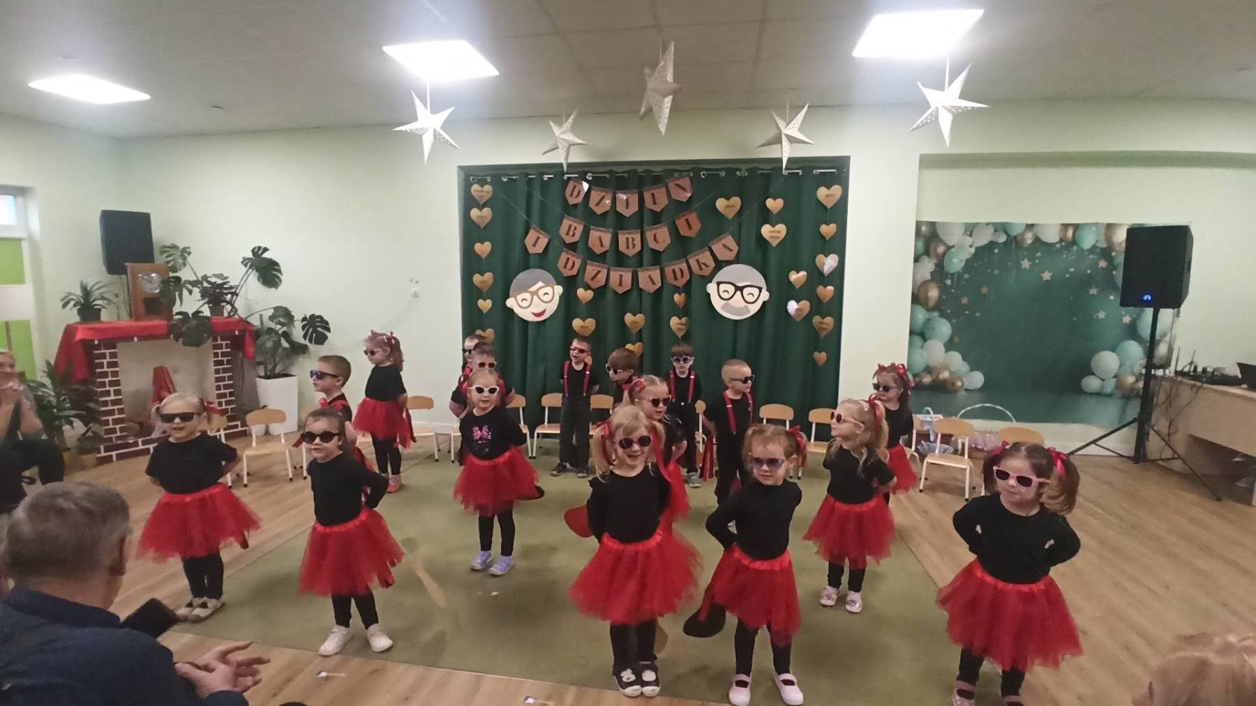 Dzień Babci i Dziadka w grupie Żyrafki 👵👴💐 To był wyjątkowy i pełen wzruszeń dzień w naszym przedszkolu. Dzieci z ogromnym zaangażowaniem zaprezentowały przygotowane występy, dziękując Babciom i Dziadkom za miłość, troskę i codzienne wsparcie. ❤️🥰 Swoją obecnością zaszczycili nas również Pani Dyrektor Magdalena Pająk, Pan Burmistrz Stefan Dziamara oraz Pan Przewodniczący Rady Miejskiej Roman Drewniacki za co serdecznie dziękujemy. 🌷 Dziękujemy wszystkim gościom za wspólnie spędzony czas i piękną, rodzinną atmosferę ❤️