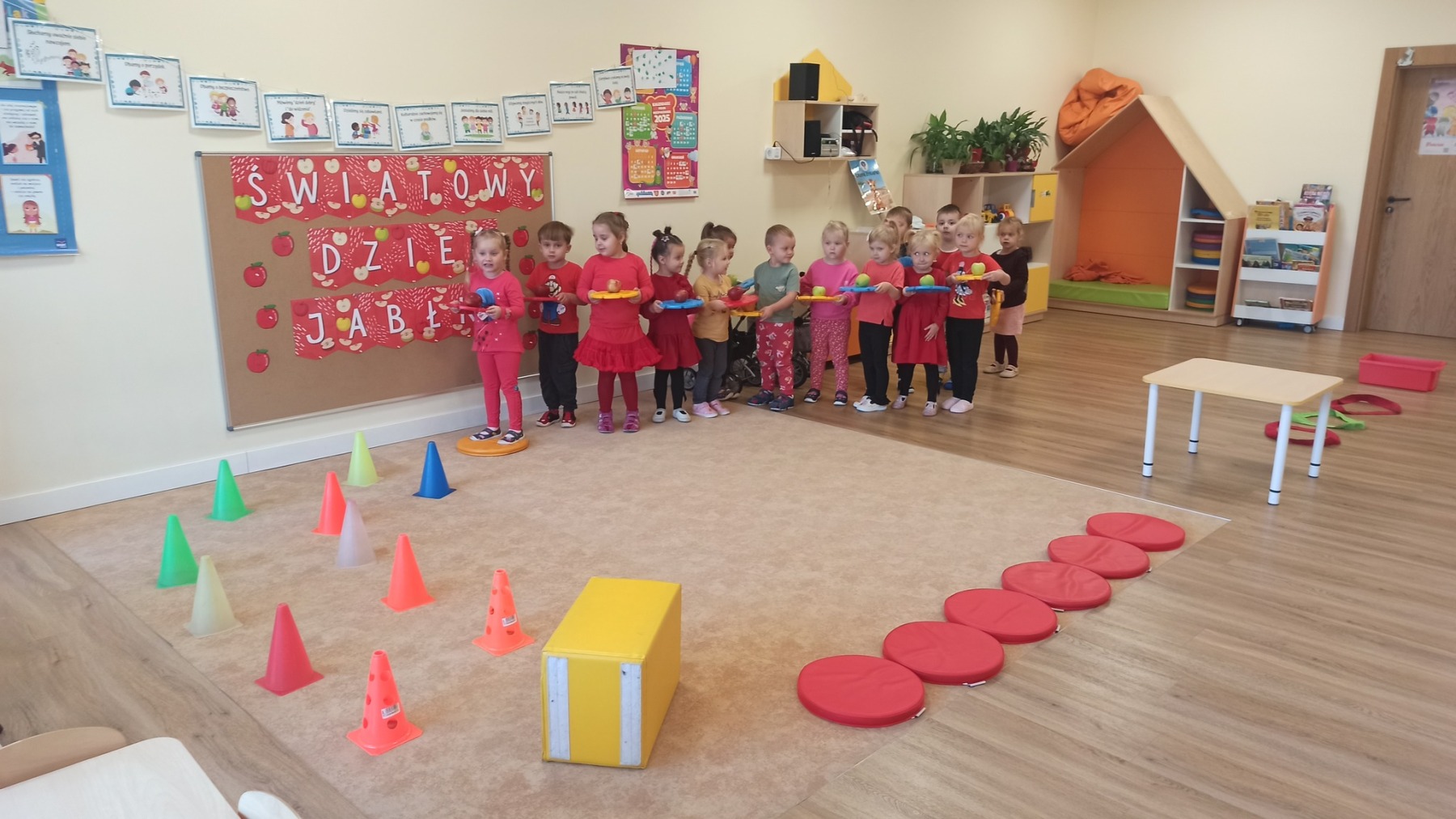 Wrzesień w grupie „Żyrafki” był miesiącem pełnym radości, nowych doświadczeń i wyjątkowych wydarzeń, które pomogły naszym 3- i 4-latkom łagodnie wkroczyć w nowy rok przedszkolny. Już na początku miesiąca świętowaliśmy Dzień Plastusia – patrona naszej placówki, inspirowanego bohaterem książki Plastusiowy pamiętnik autorstwa Maria Kownacka. Dzieci poznały przygody Plastusia, brały udział w zabawach plastycznych z wykorzystaniem plasteliny oraz tworzyły własne, kolorowe ludziki. Był to dzień pełen twórczej aktywności i rozwijania wyobraźni. Obchodziliśmy również Międzynarodowy Dzień Kropki – święto kreatywności i wiary we własne możliwości. „Żyrafki” odkrywały, że nawet mała kropka może stać się początkiem czegoś wielkiego. Powstały niezwykłe prace plastyczne, a dzieci z dumą prezentowały swoje dzieła. Szczególną radość przyniósł nam Ogólnopolski Dzień Przedszkolaka – dzień pełen zabaw integracyjnych, tańców, konkursów i niespodzianek. Nie zabrakło uśmiechów, wspólnych zdjęć i poczucia, że przedszkole to miejsce pełne przyjaźni i dobrej zabawy. Podczas Powitania Jesieni dzieci poznawały pierwsze oznaki nowej pory roku. Wspólnie tworzyliśmy jesienne prace plastyczne, rozmawialiśmy o zmianach zachodzących w przyrodzie i uczestniczyliśmy w zabawach ruchowych z wykorzystaniem darów jesieni. W Dniu Jabłka królowały zdrowe przekąski i rozmowy o witaminach. Dzieci degustowały różne odmiany jabłek, wykonywały jabłkowe prace plastyczne oraz dowiedziały się, dlaczego warto jeść owoce. Nie zapomnieliśmy także o Dniu Chłopaka – był to wyjątkowy czas pełen życzeń, upominków i radosnych zabaw, które sprawiły naszym chłopcom wiele radości. We wrześniu rozpoczęliśmy również realizację projektu „Czuciaki z Krainy Emocji”. Pierwsze wyzwanie dotyczyło Śmieszki z Wyspy Radości. Dzieci rozmawiały o emocji radości, uczyły się ją rozpoznawać i wyrażać w bezpieczny sposób. Wspólne zabawy, prace plastyczne i ćwiczenia integracyjne pomogły nam zrozumieć, jak ważne jest dzielenie się uśmiechem i pozytywną energią z innymi. To był piękny, intensywny miesiąc, który pozwolił naszym „Żyrafkom” poczuć się częścią przedszkolnej społeczności i z entuzjazmem rozpocząć nową przygodę.