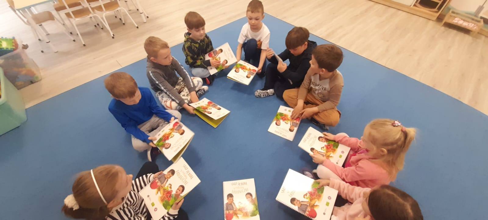 Poprzez oglądanie broszur edukacyjnych oraz filmu dydaktycznego pt. „Skąd się biorą produkty ekologiczne?” przedszkolaki wyszukiwały znaczki ekologiczne oraz obserwowały na jakich produktach się one znajdują. Poznały rytm dnia rolnika oraz dowiedziały się jakimi cechami charakteryzuje się żywność ekologiczna. Przy tej okazji przypomniały też prawidłowe mycie rąk.